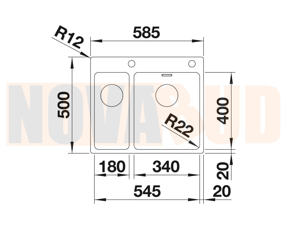- Wymiary zlewozmywaka:545/500 mm
