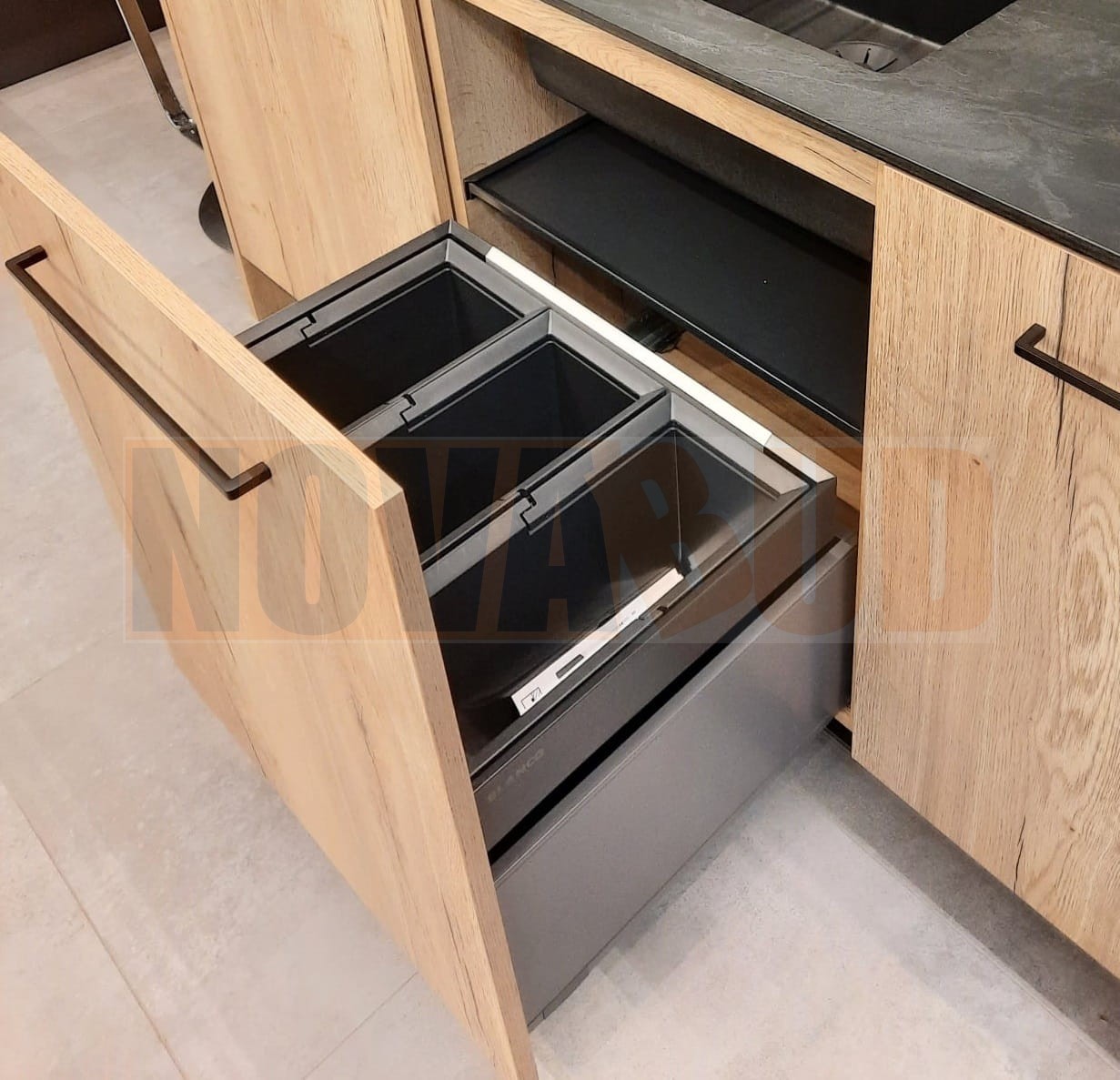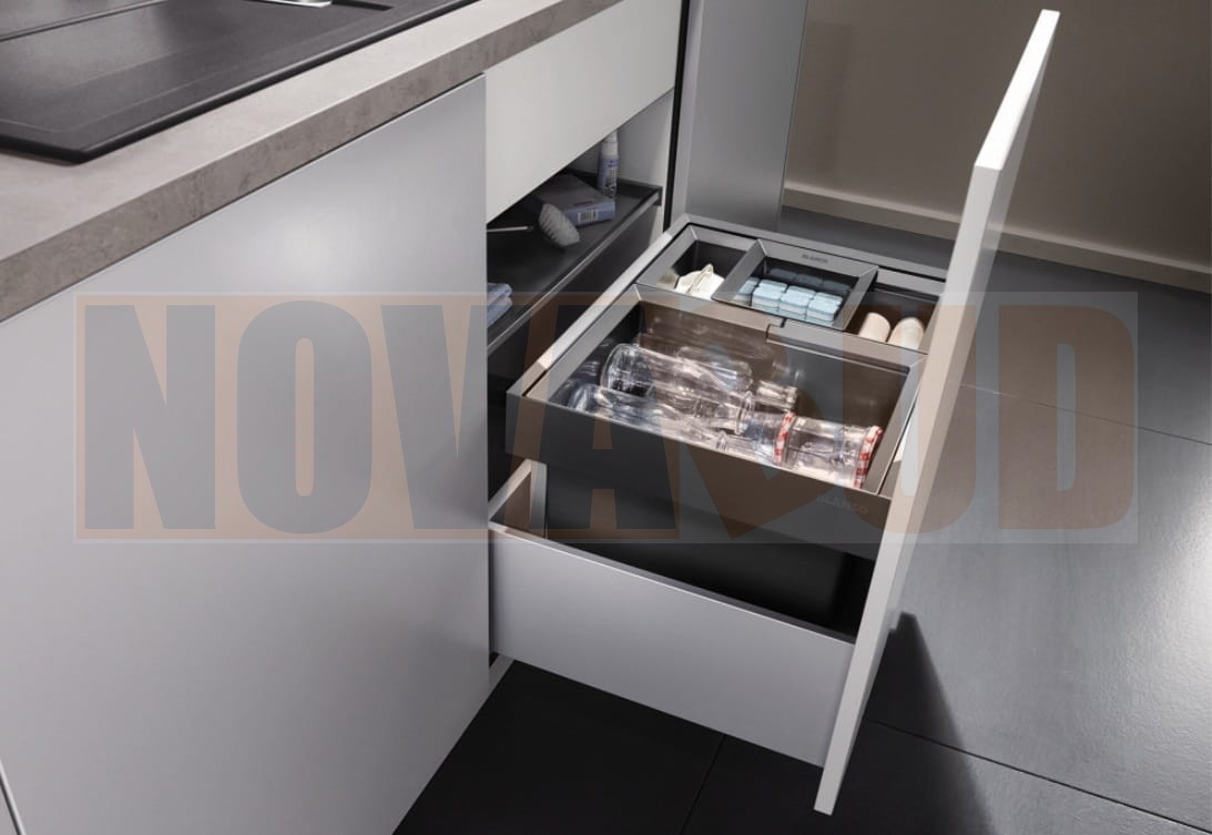 - Podczas planowania należy zwrócić uwagę na wysokość montażową systemu segregacji odpadów, wysokość dna szuflady, głębokość montażową zlewozmywaka z armaturą przelewowo-odpływową i wynikające z tego minimalne wymiary szafki dolnej.