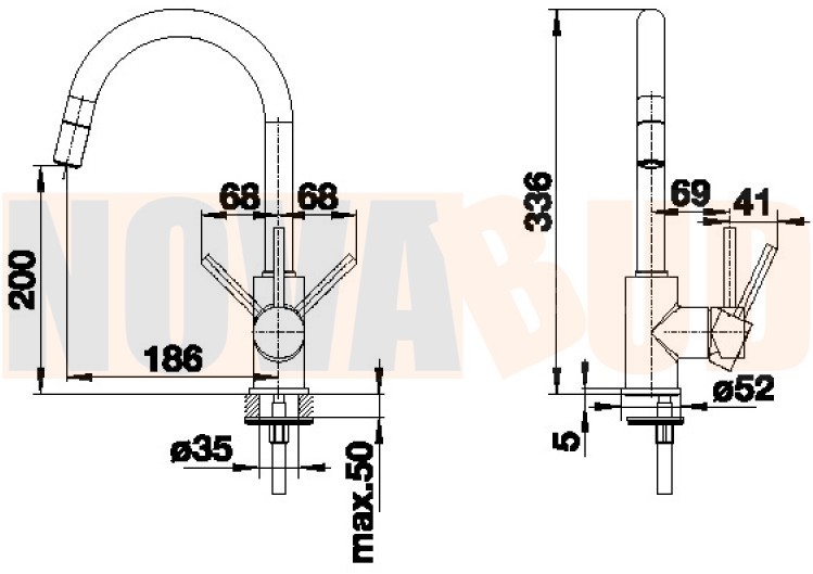 Kąt obrotu wylewki 360°