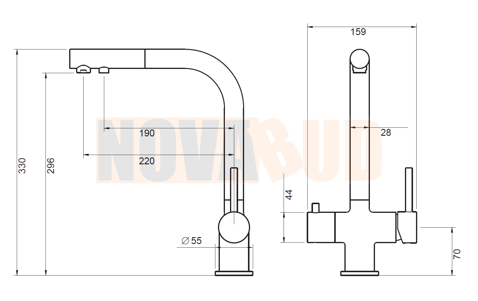 – mieszacz wody ciepłej i zimnej (prawa strona)