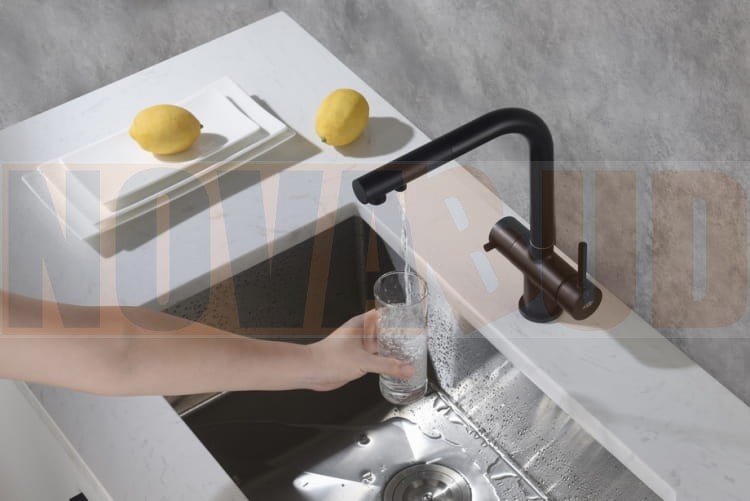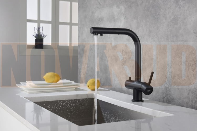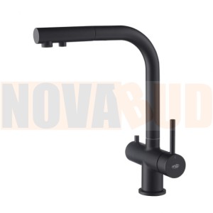 Blue Water APALA czarny mat bat.kuchenna z pod.do wody filtrowanej z wyc.wyl dwuobwodowa 5901730616552