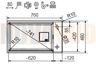 - Wymiar zewnętrzny: lewa-prawa 760 mm
