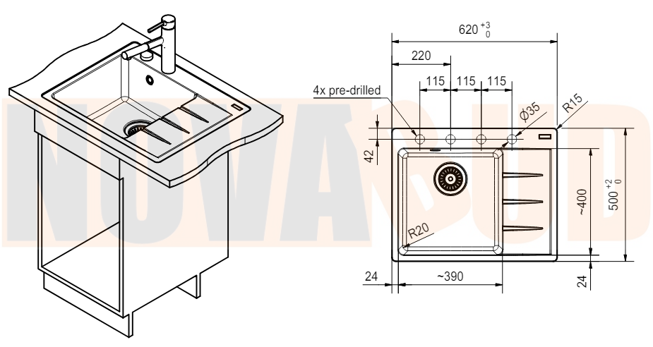 Zlewozmywak wbudowywany z linii Centro CNG 611-62 TL z ociekaczem po prawej stronie wyposażony jest w system łatwego montażu Fast Fix. Został wyprodukowany z Fragranitu+, który składa się w 80% z naturalnego granitu. Dzięki zastosowaniu bardzo drobnych cząsteczek granitu, uzyskano zlewozmywak idealnie gładki i delikatny w dotyku. Wszystkie zlewozmywaki fragranitowe FRANKE, wyprodukowane są z wykorzystaniem technologii Sanitized®. Zawierają zatem szkło fosforanowe z dodatkiem srebra, ograniczającym rozwój bakterii do 99%. Co więcej, zlewozmywaki z Fragranitu+ są odporne na zarysowania, uderzenia i zaplamienie, a ich kolor nie zmienia się z upływem czasu. Są również odporne na krótkotrwałe działanie wysokiej temperatury (do 280°C przez 15 sek.). W zestawie występuje korek zatyczkowy Grey Line 3 1/2" .W przypadku montażu dodatkowych akcesoriów: np. dozownika, korka auto należy dokupić podkładkę dystansującą 133.0533.532