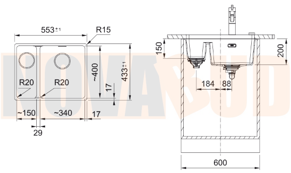 Wymiar zewnętrzny: lewa-prawa 553 mm