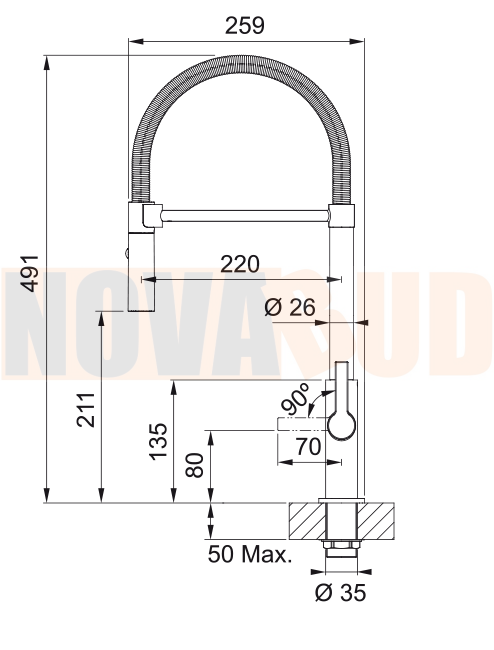 - Zakres obrotu wylewki 360°