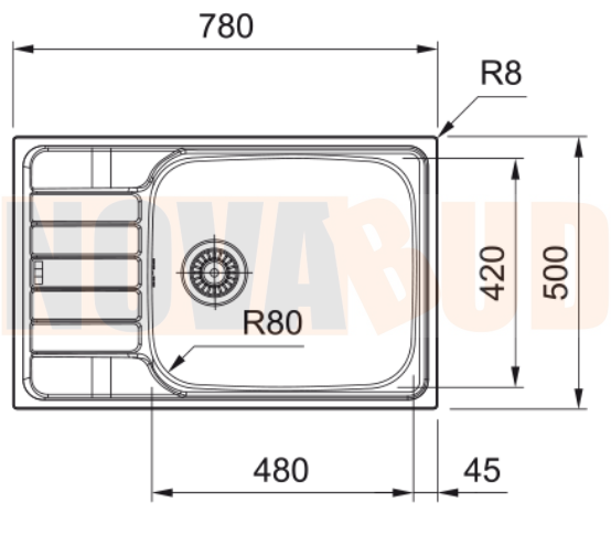 Możliwość wykonania otworu pod baterię przy płatności przedpłatą, zamówienie spersonalizowane, proszę w uwagach przy zamówieniu podać stronę położenia ociekacza, wysyłamy rysunek techniczny do akceptacji. Opłata za otwór pod baterię 50 zł