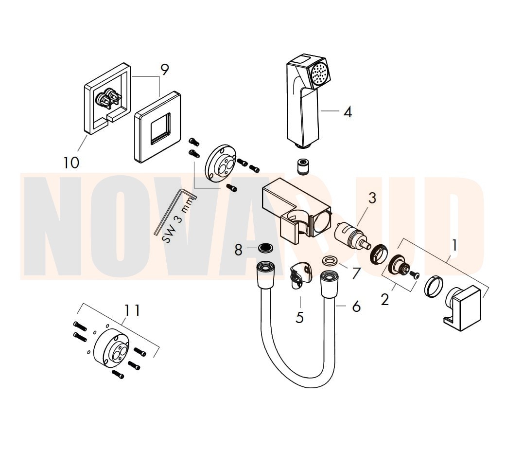 - składa się z: główka prysznicowa Bidette, zawór odcinający ze zintegrowanym uchwytem prysznicowym, wąż prysznicowy