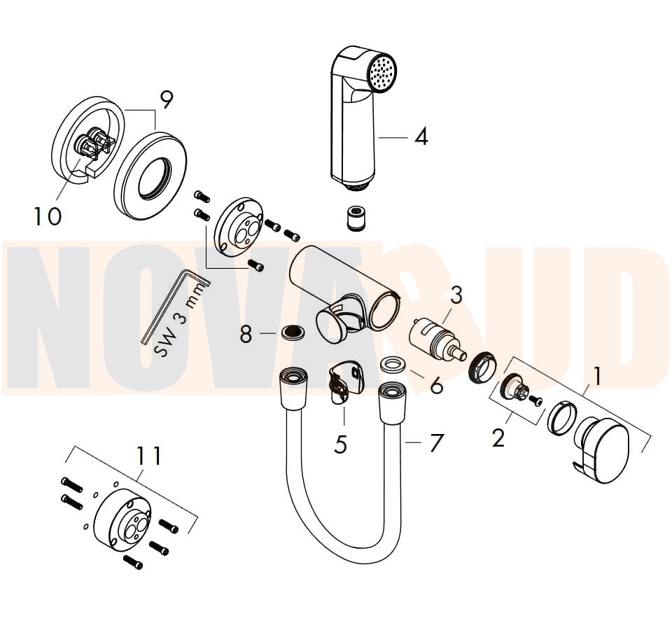- składa się z: główka prysznicowa Bidette, zawór odcinający ze zintegrowanym uchwytem prysznicowym, wąż prysznicowy